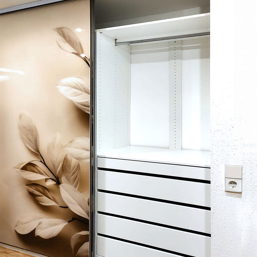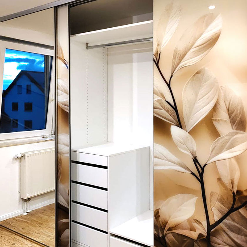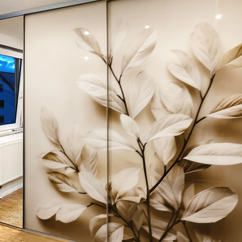 Individueller Digitaldruck auf Schiebetüren aus Glas